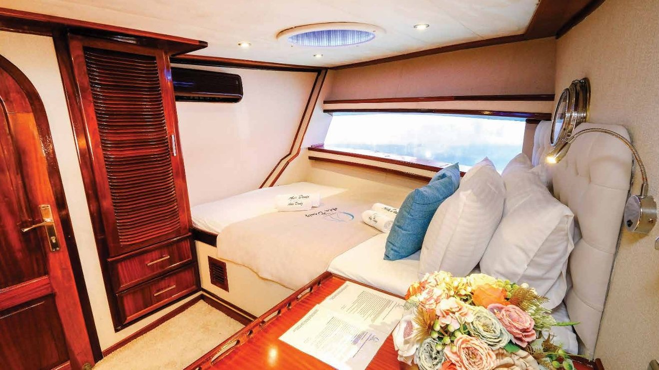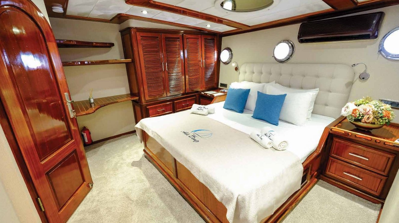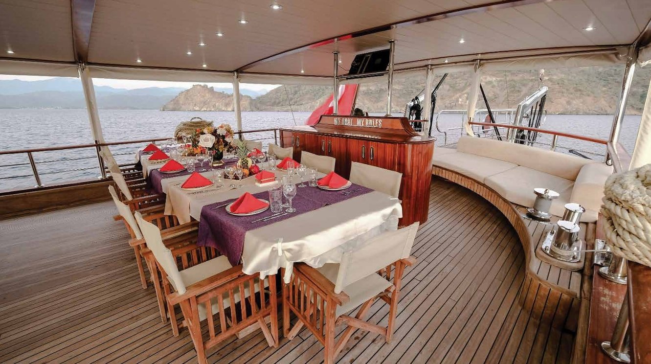 Whether you wish to soak up the sun on the spacious deck or relax in the lounge listening to music or watching TV when the heat of the midday sun is too fierce her crew is on hand to ensure that you enjoy sailing in Turkey.