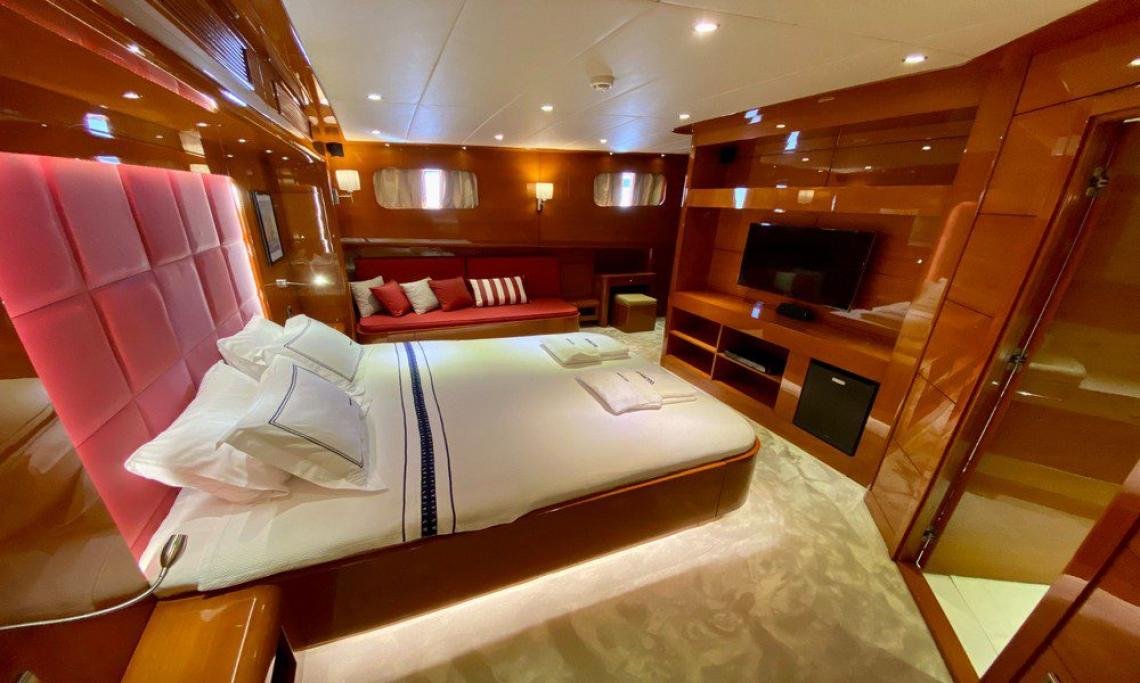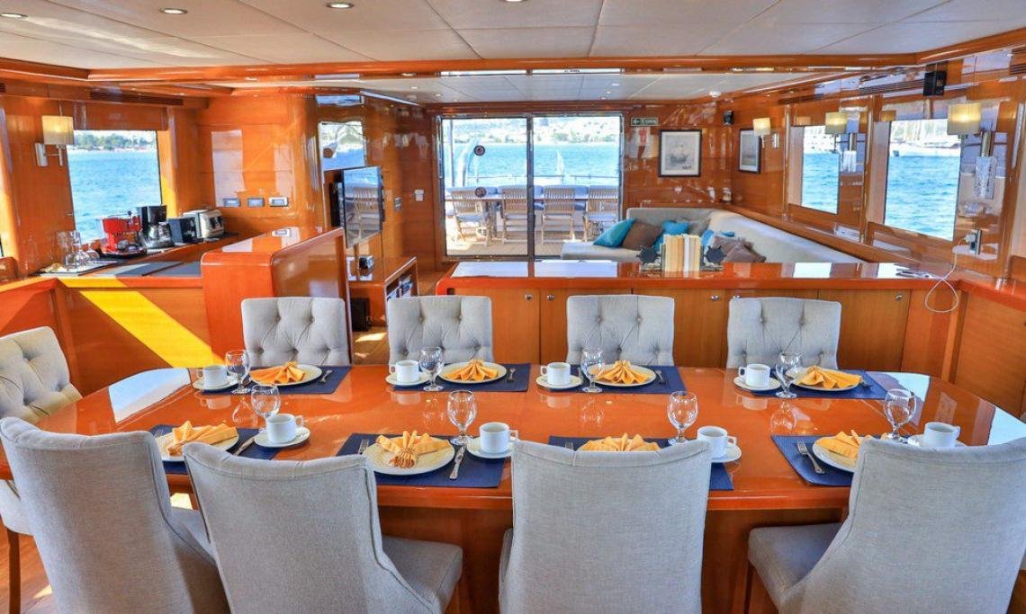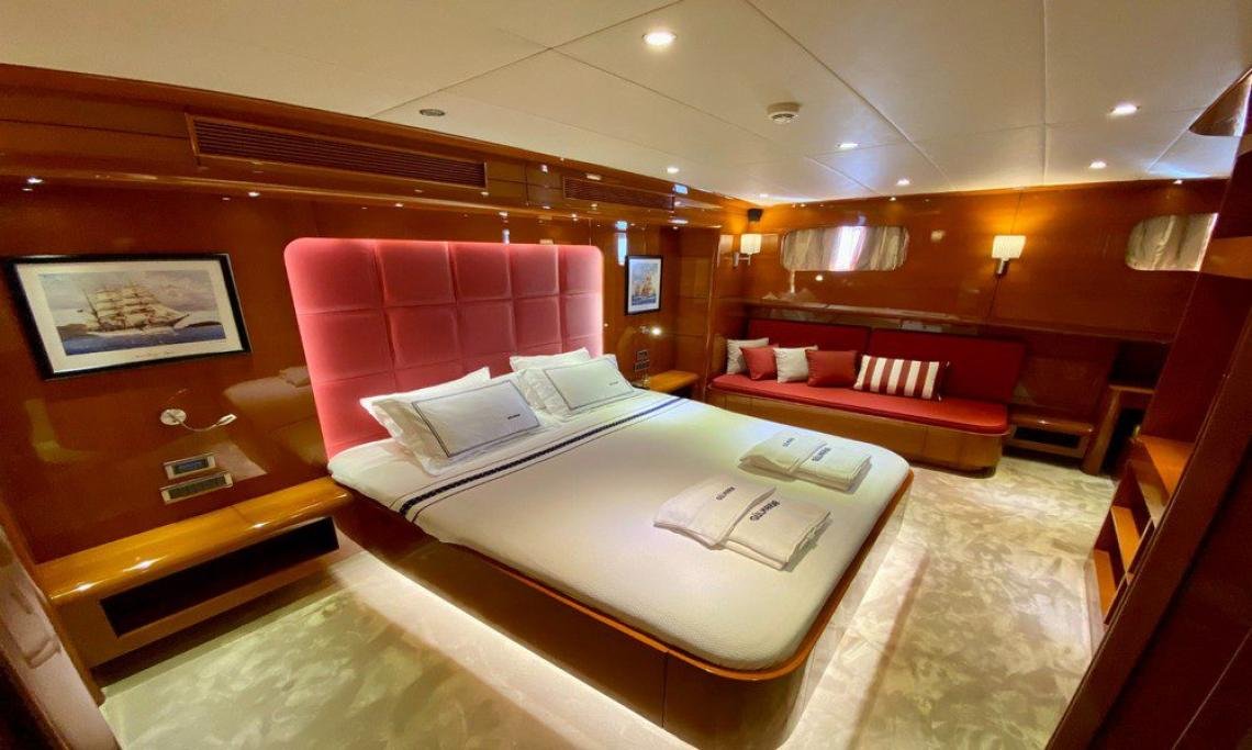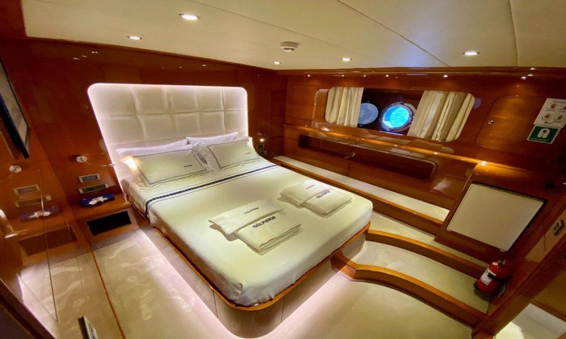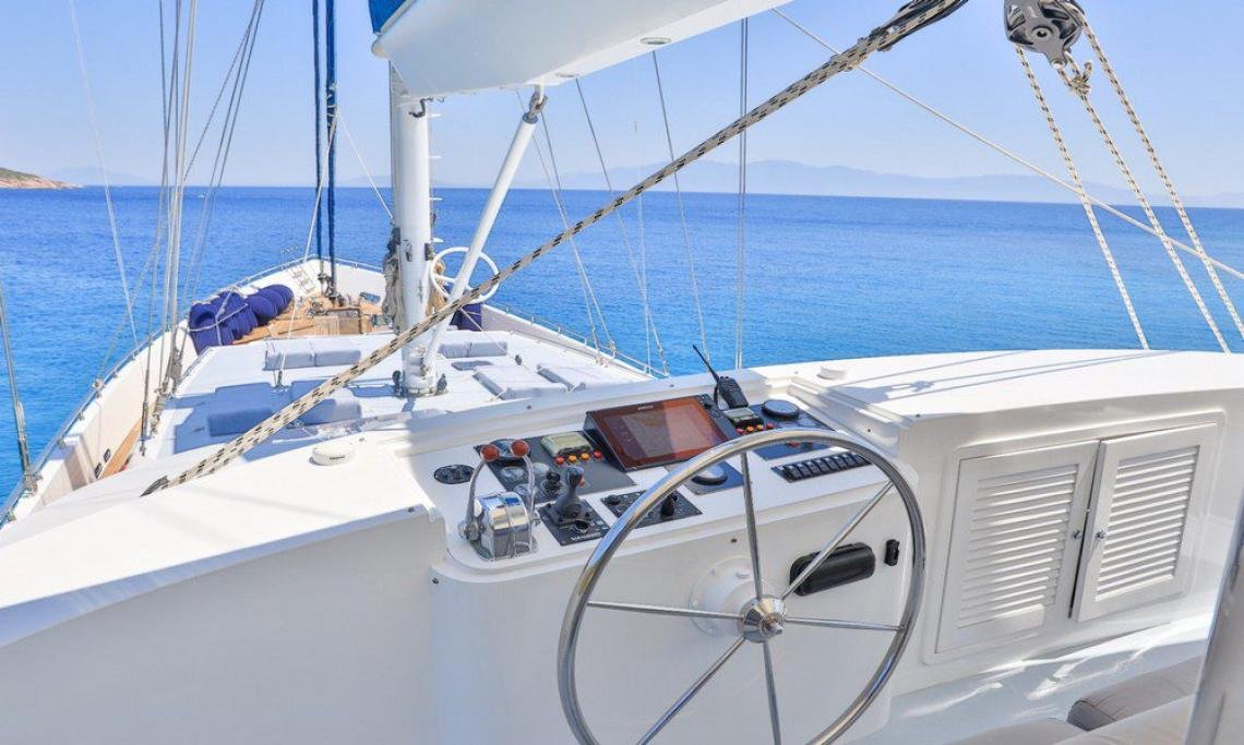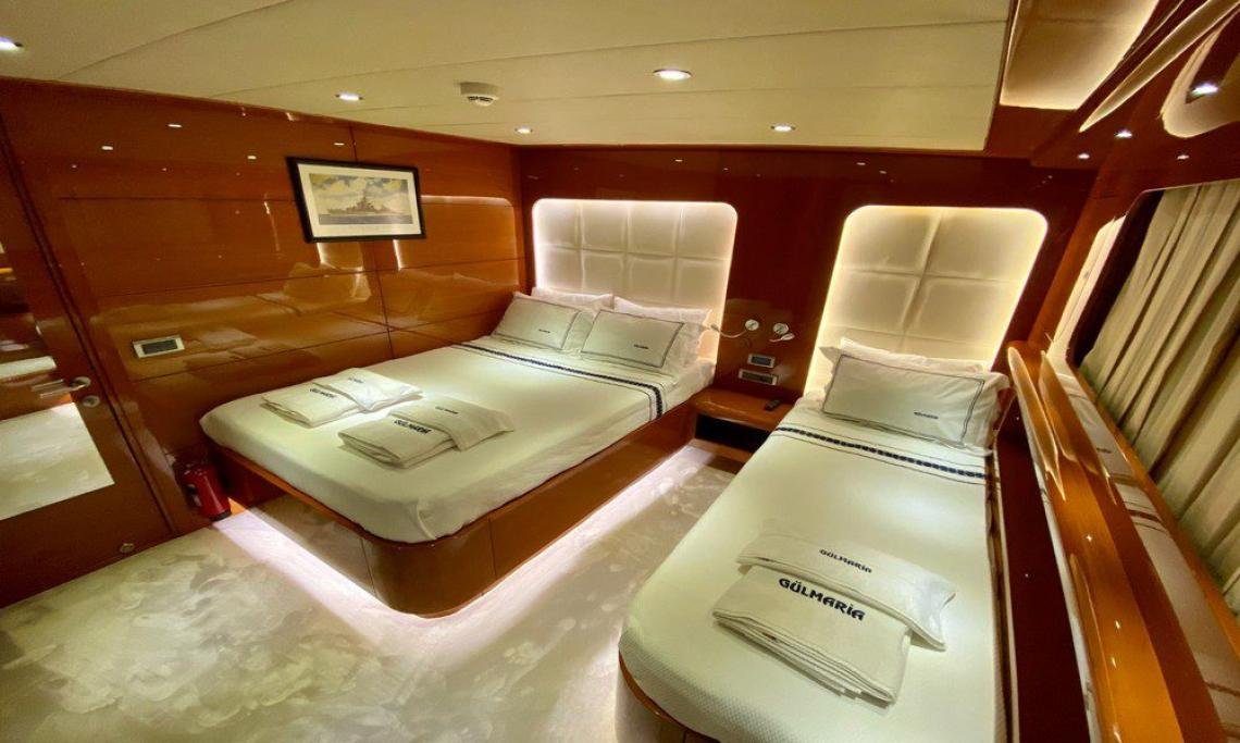 It is a gulet in the deluxe gulet class and has 2 master cabins, 2 double cabins and It has 2 twin cabin architecture. Each cabin has its own bathroom and a total of 6 toilets. Canaria gulet has a length of 38 meters and a width of 8.6 meters. It has a capacity of 12 guests in total. It departs from Bodrum marina and cruises in Bodrum Gökova bays. Our boat, which is built and anchored, provides service with 7 personnel. Our boat has equipment such as air conditioning, wifi, music sound system, canoe, generator, water maker, water sports.If you want, you can shop for food and beverages yourself, or our boat team can provide them on your behalf after determining your list by speaking to our boat cook.