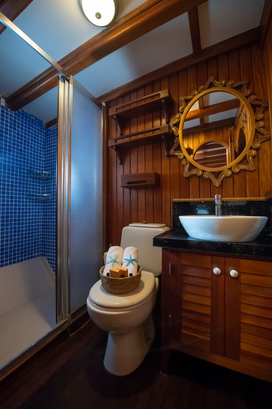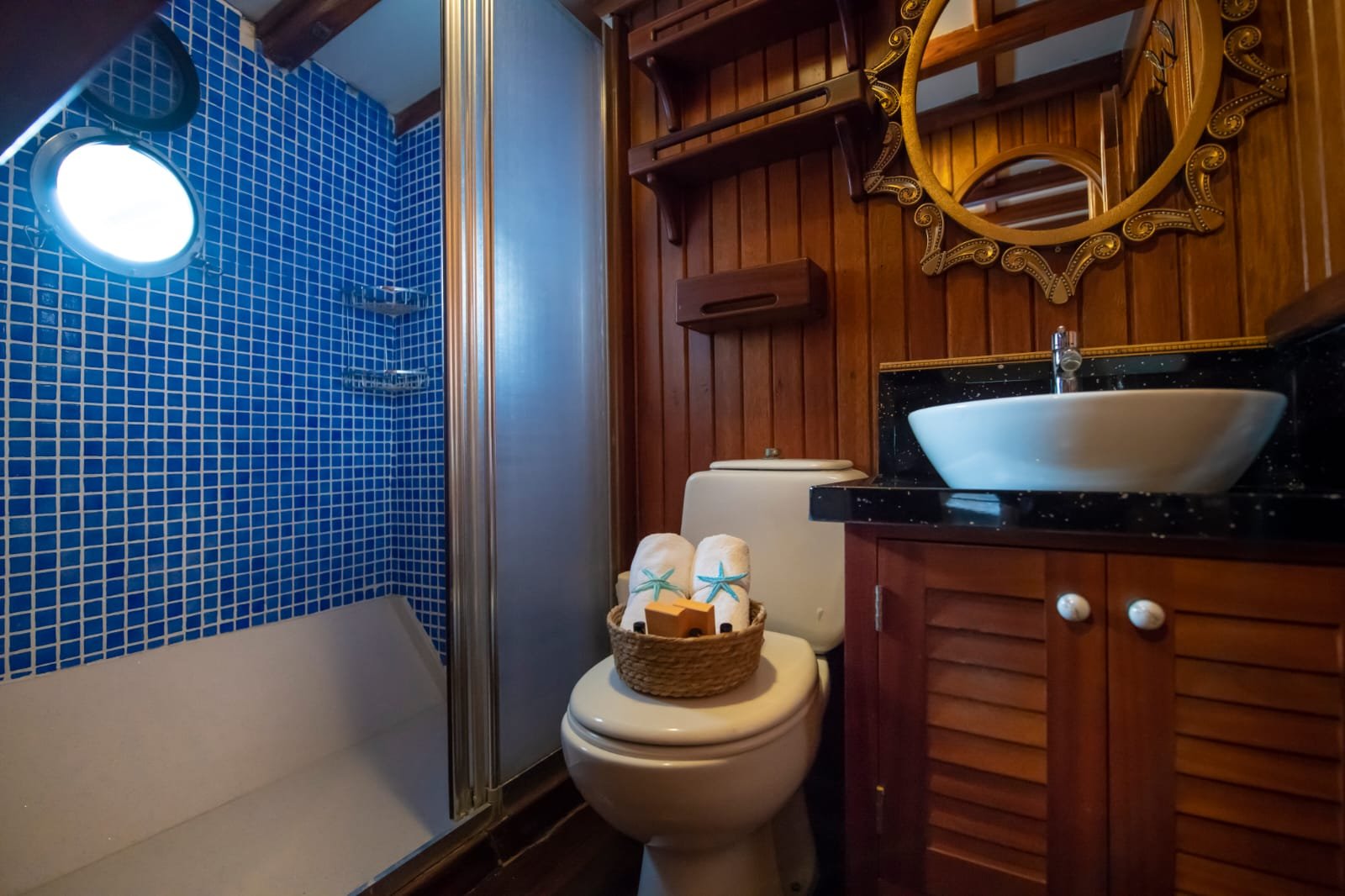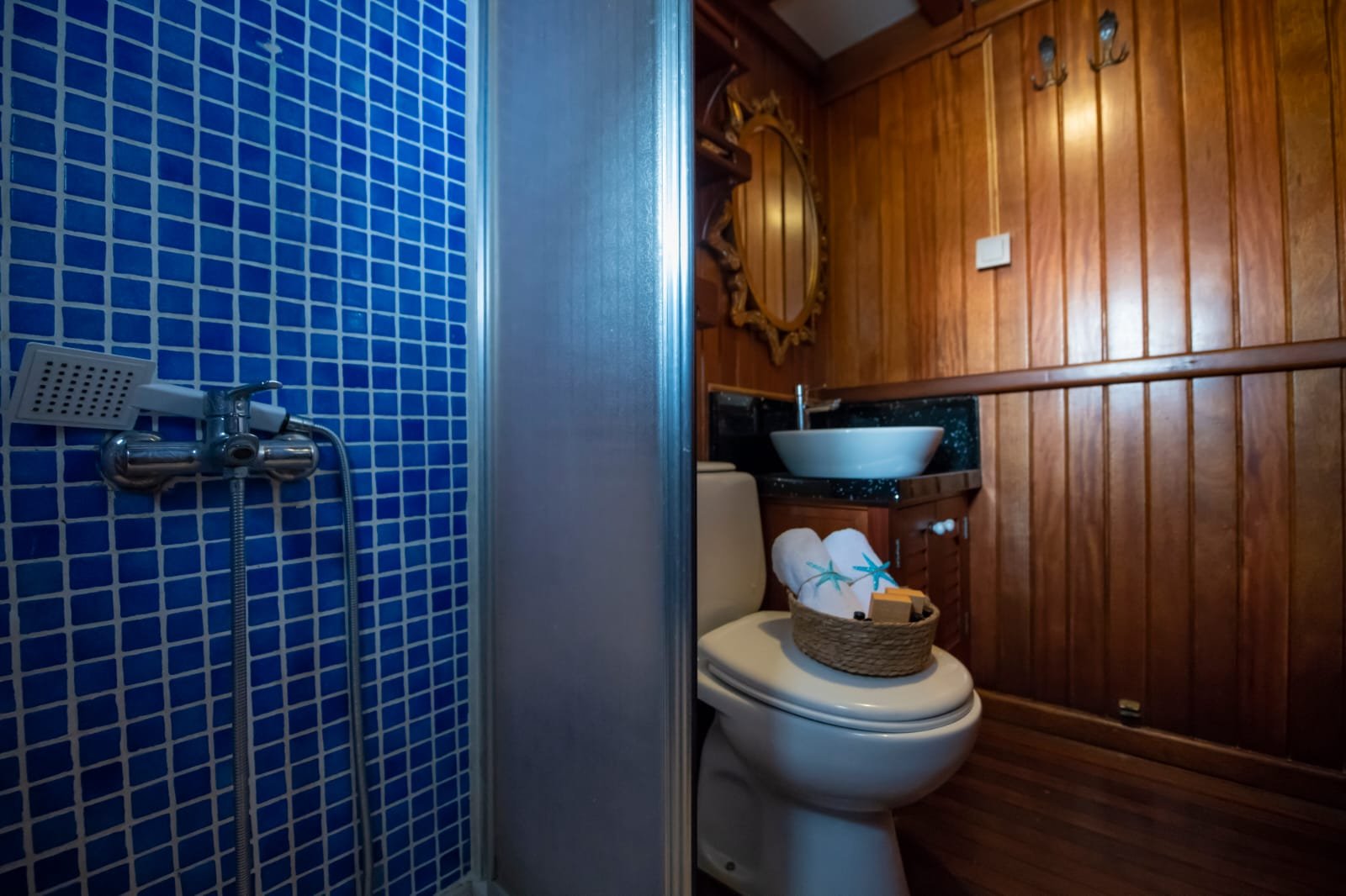 All cabins are fully air-conditioned and include private WC and shower, wardrobe, and hair dryer.
