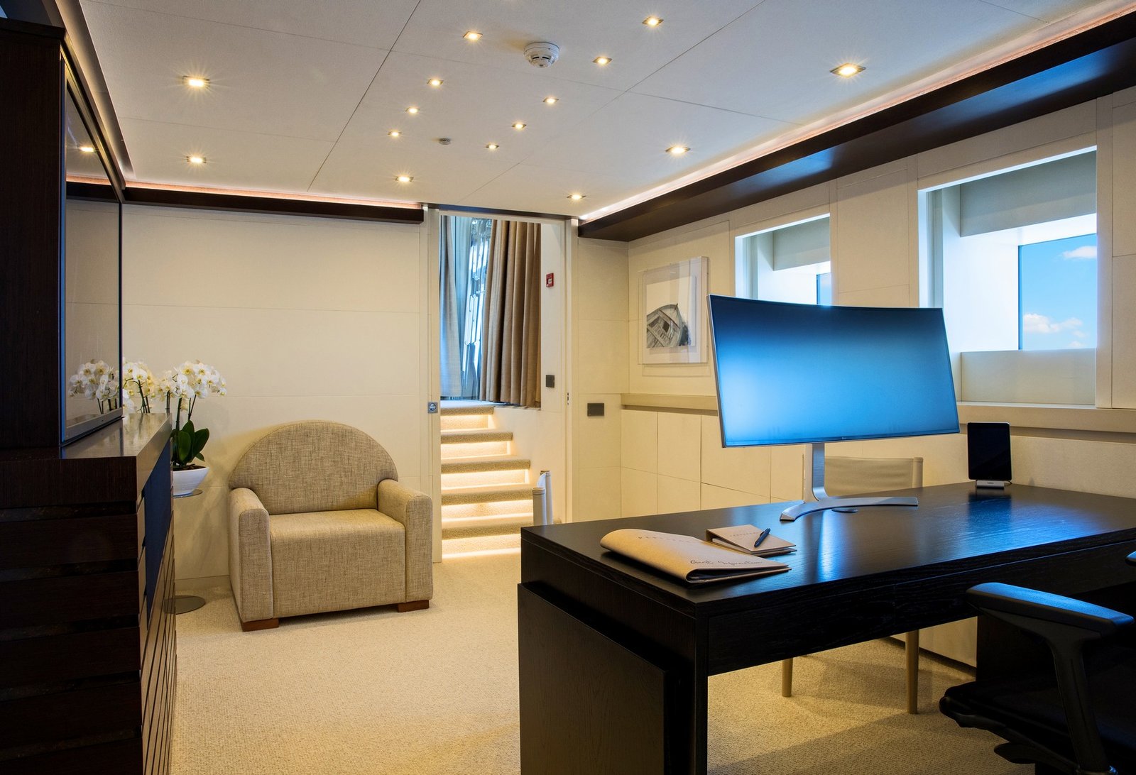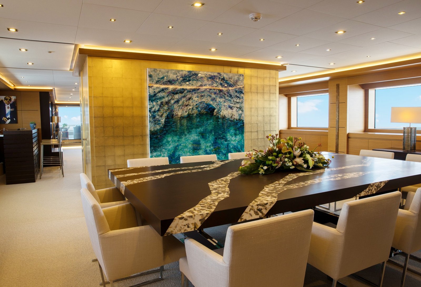 The yacht’s sophisticated interior design is created by LUCA DINI Design & Architecture, reflecting refined Italian style and modern luxury.
